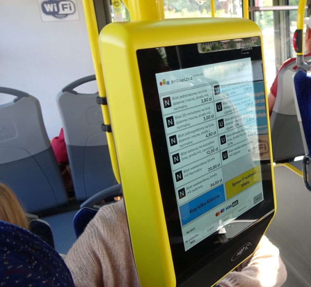 Bilety można kupić kartą płatniczą w pojeździe przy terminalu: